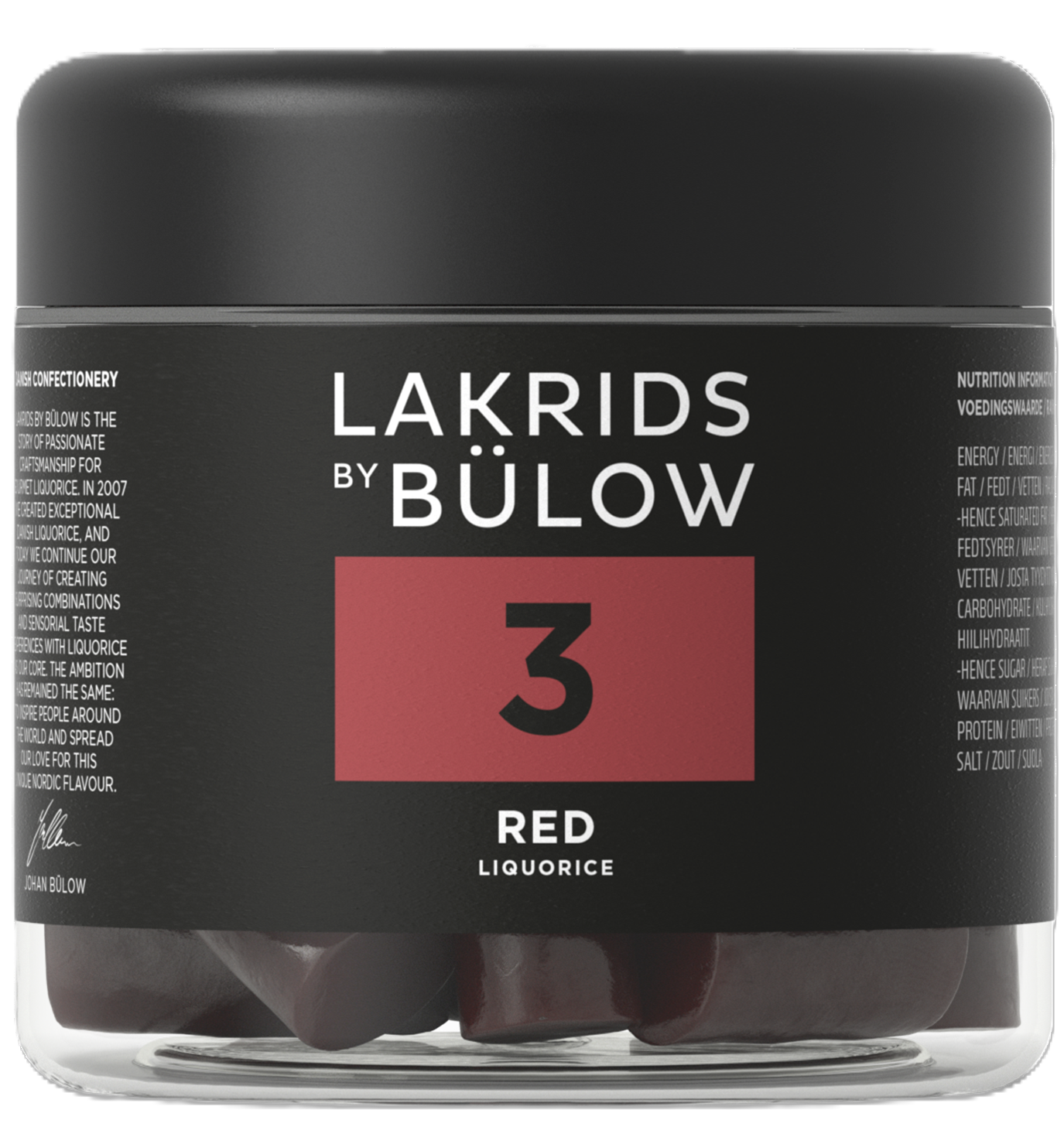 Es hat mehr als 5 Jahre gedauert, Johan Bülow’s Variation des amerikanischen Lakritzes zu schaffen. Red liquorice – weich und unglaublich zart mit echten Früchten und puren Fruchtsäften. Ein exquisiter Geschmack nach schwarzen Johannisbeeren, Cranberry, Zitrone und Erdbeere, ausgewogen mit Lakritz.