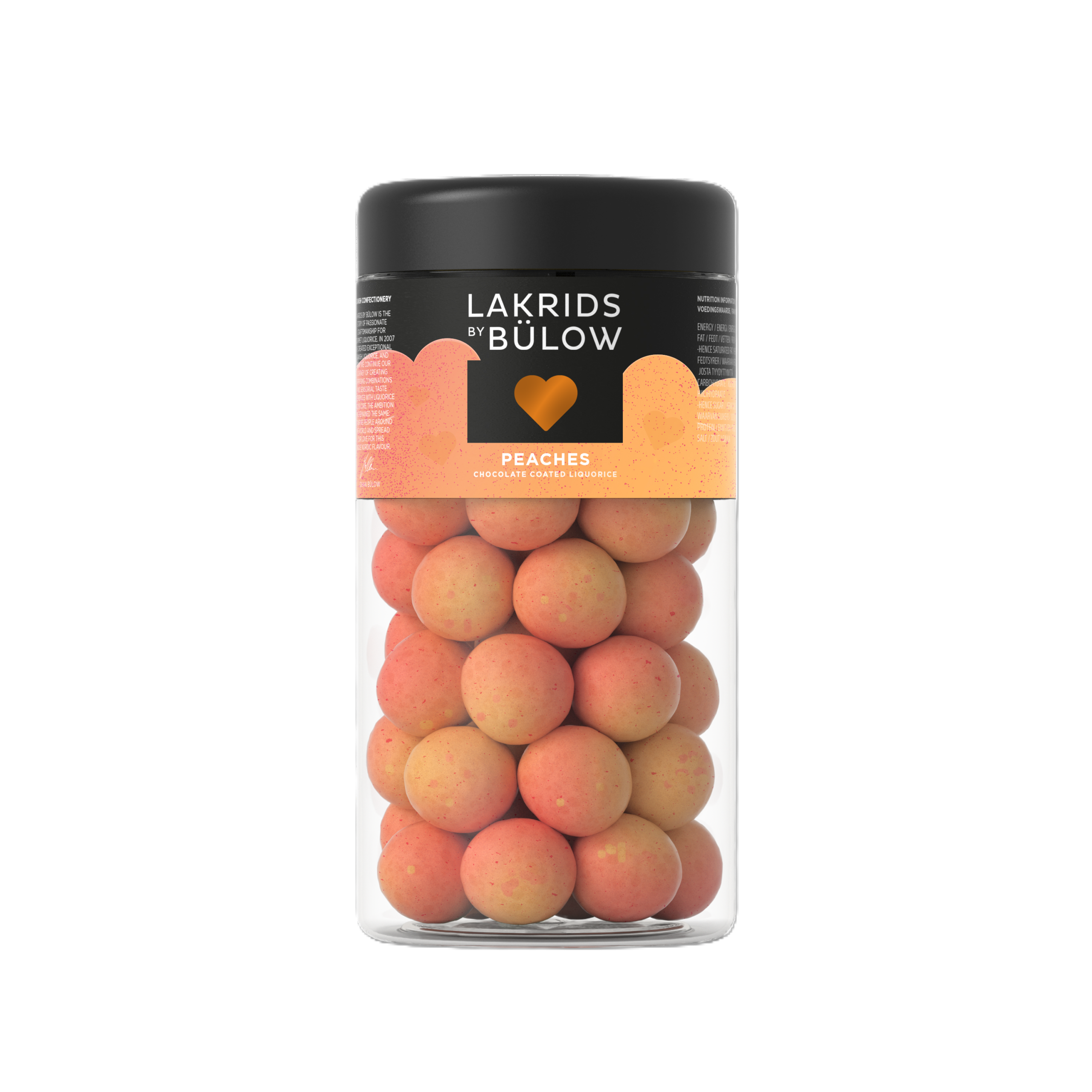 Für manche ist der Pfirsich der König der Früchte, und wir verstehen, warum. PEACHES vereint süße Noten von saftigen Pfirsichen mit einem Kern aus süßem Lakritz, umhüllt von zarter weißer Schokolade, mit Salmiak und einem Hauch von Passionsfrucht. Eine knusprige Zuckerhülle sorgt für den letzten Crunch